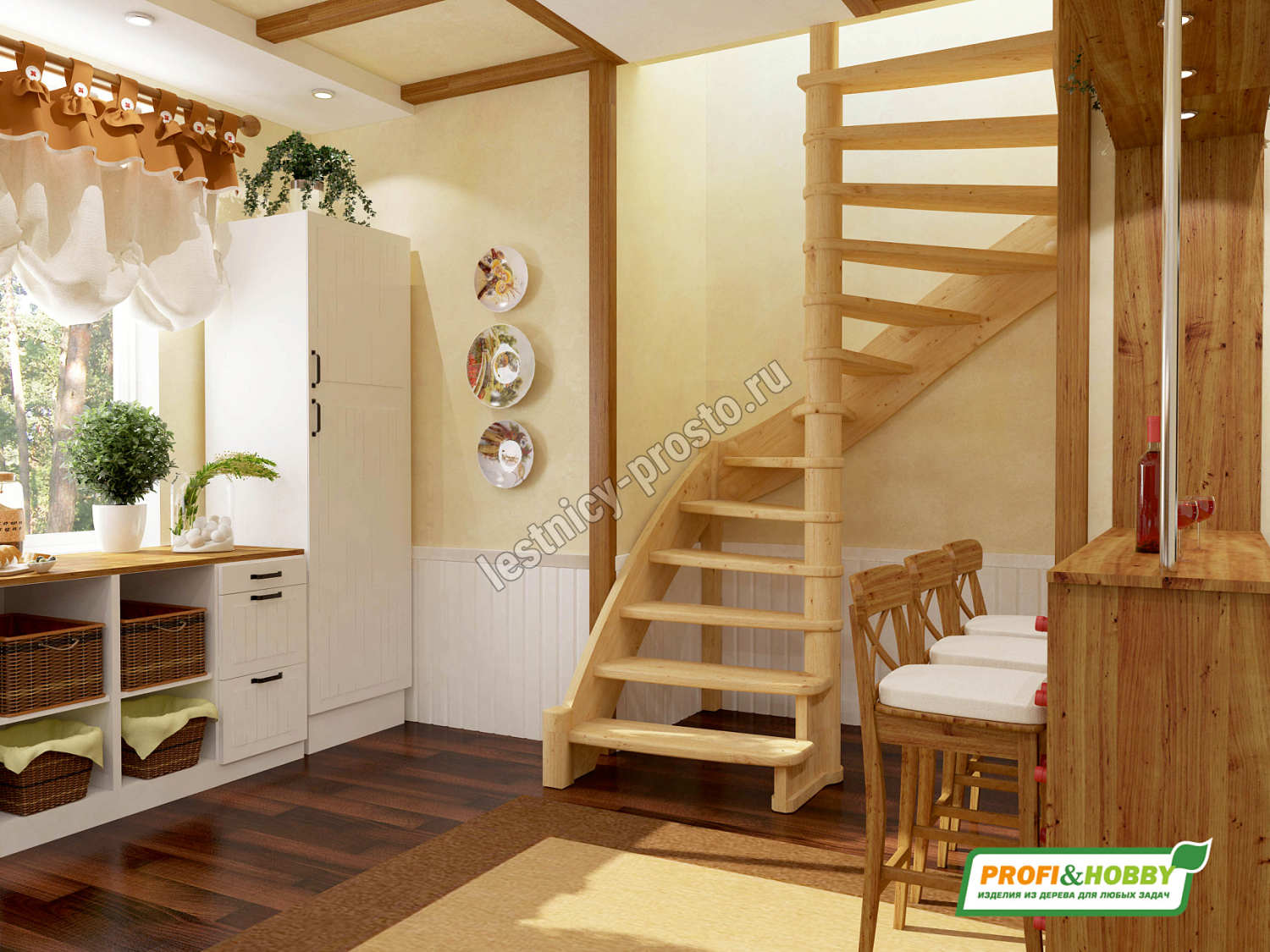 В производстве лестницы ЛС-01м под покраску используется сосна с небольшими изменениями цвета, что практически не влияет на ее механические свойства и почти незаметно при покраске в темные цвета. Базовый комплект включает в себя деревянные элементы лестницы без какого-либо покрытия.