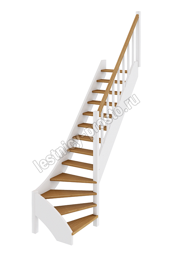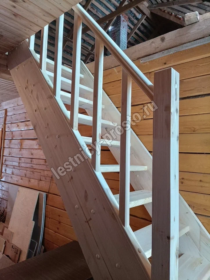 Базовый комплект включает в себя деревянные элементы лестницы и ограждения без какого-либо покрытия. Лестница под покраску изготовлена из сосны с небольшими участками синевы, которая мало влияет на механические свойства материала и практически незаметна при покраске лестницы в тёмные цвета, однако позволяет снизить стоимость готовой лестницы, по эксплуатационным свойствам ничем не отличающейся от более дорогого аналога.