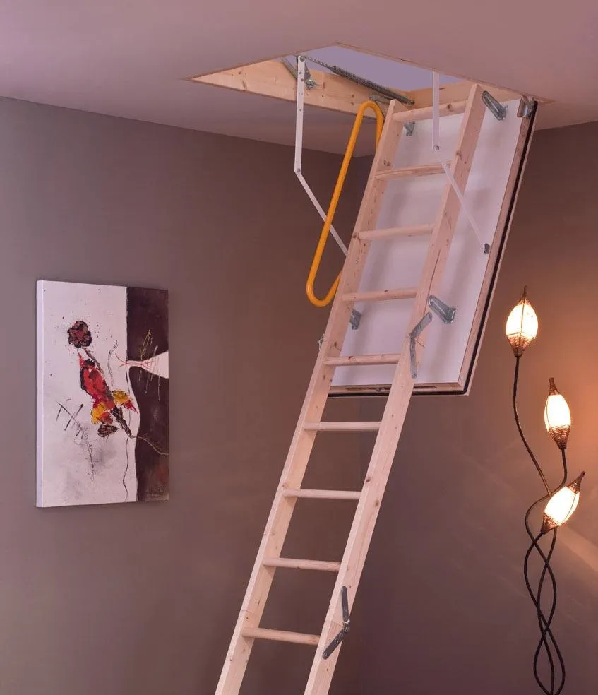 Ступени и поручень лестницы изготовлены из ясеня, остальные элементы из сосны.