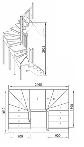 Высота лестницы 2925 мм