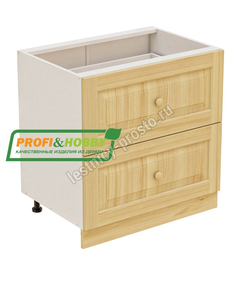 Тумба 2 ящика 800х530х720 + фасад сосна бесцветный акриловый лак