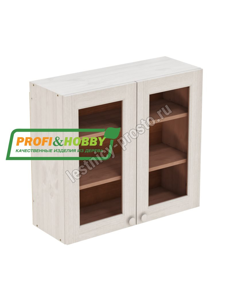 Шкаф навесной изготовлен из 100% массива дерева, без шпона и без МДФ/ДСП.