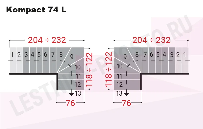Модульная лестница Kompact 74 Г-образная