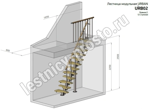 Компактная модульная лестница в стиле LOFT.