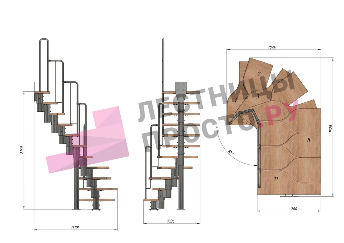 Лестница Prosto Urban Black гусиный шаг 700 мм/Ступени из берёзы мультиплекс