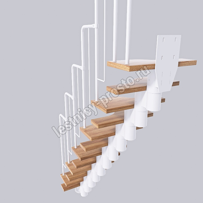 Лестница Prosto Urban White гусиный шаг 600 мм, h234-336 см (13 ступеней), бук