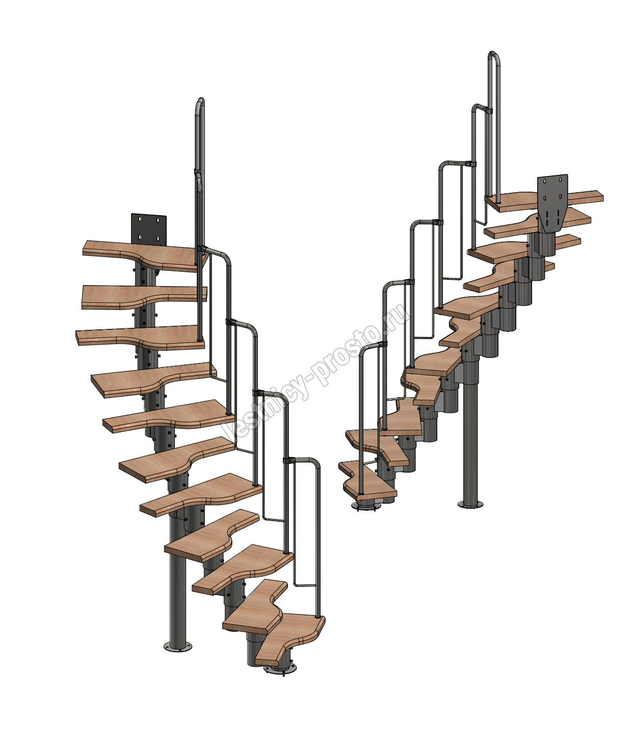 соответствует картинке, но вы не ограничены в его выборе. Лестницу можно приобрести и без ограждения, и с любым другим. Устанавливать на такую лестницу можно почти всё, начиная от классических деревянных балясин и заканчивая эксклюзивными коваными изделиями.