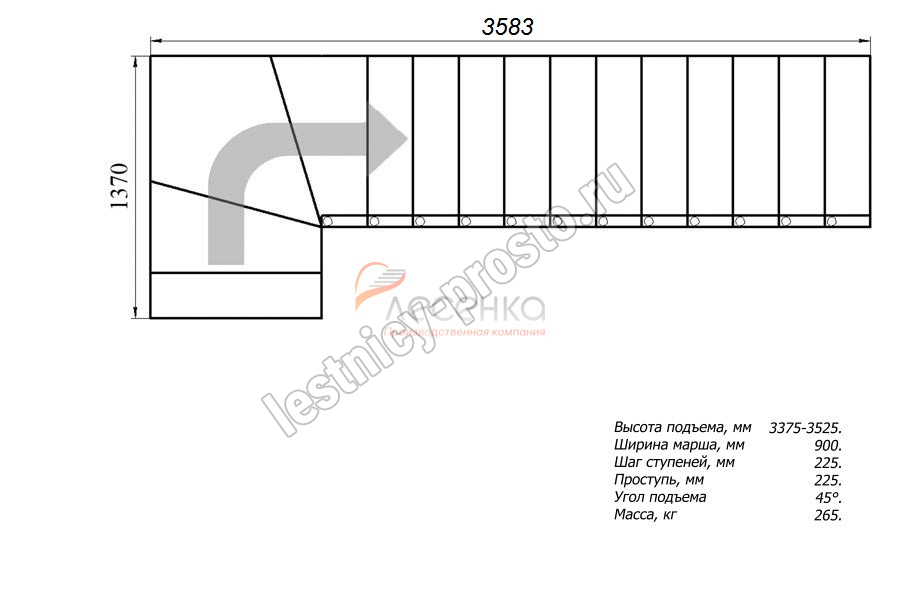 Модульная лестница Фаворит 225 3375-3525, Белый, Лиственница, Нержавеющая сталь