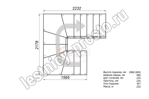 Модульная лестница Спринт 225 2925-3055, Серый, Сосна, Нержавеющая сталь