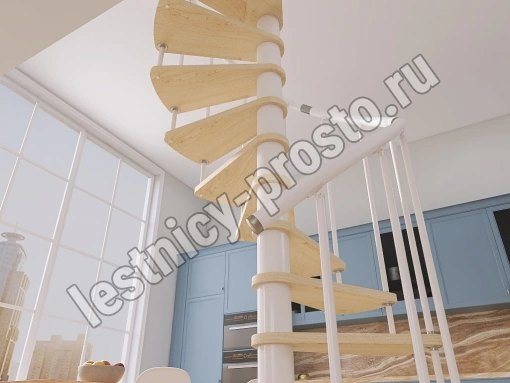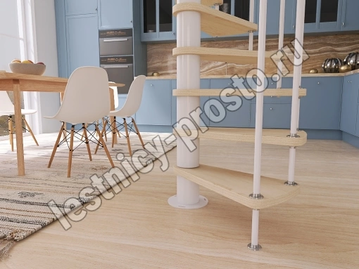 Винтовая лестница Prosto Spiral White D140см, h303.9-348,1 см, бук