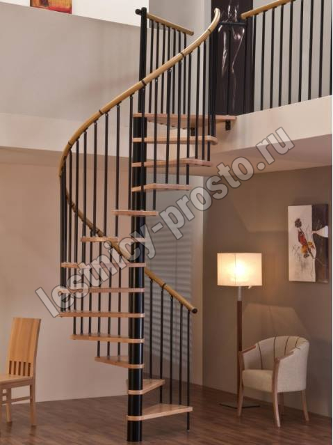 | Винтовая лестница SPIRAL WOOD d120 см, черная, лакированный бук |
