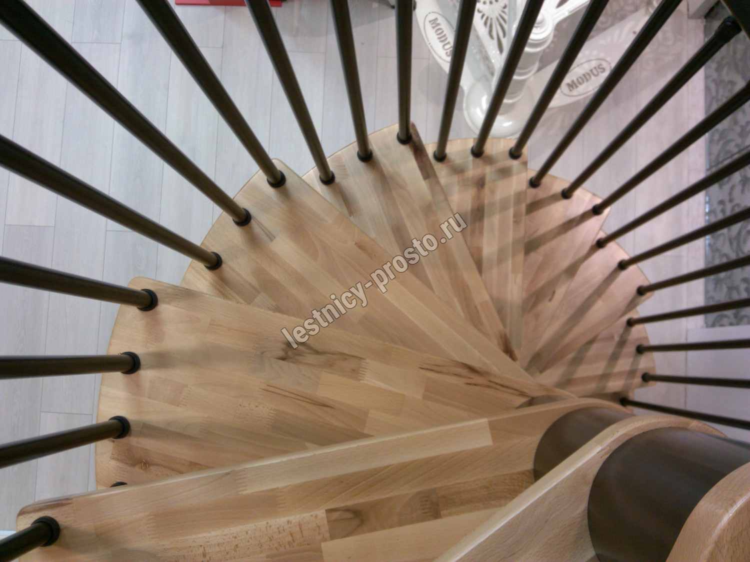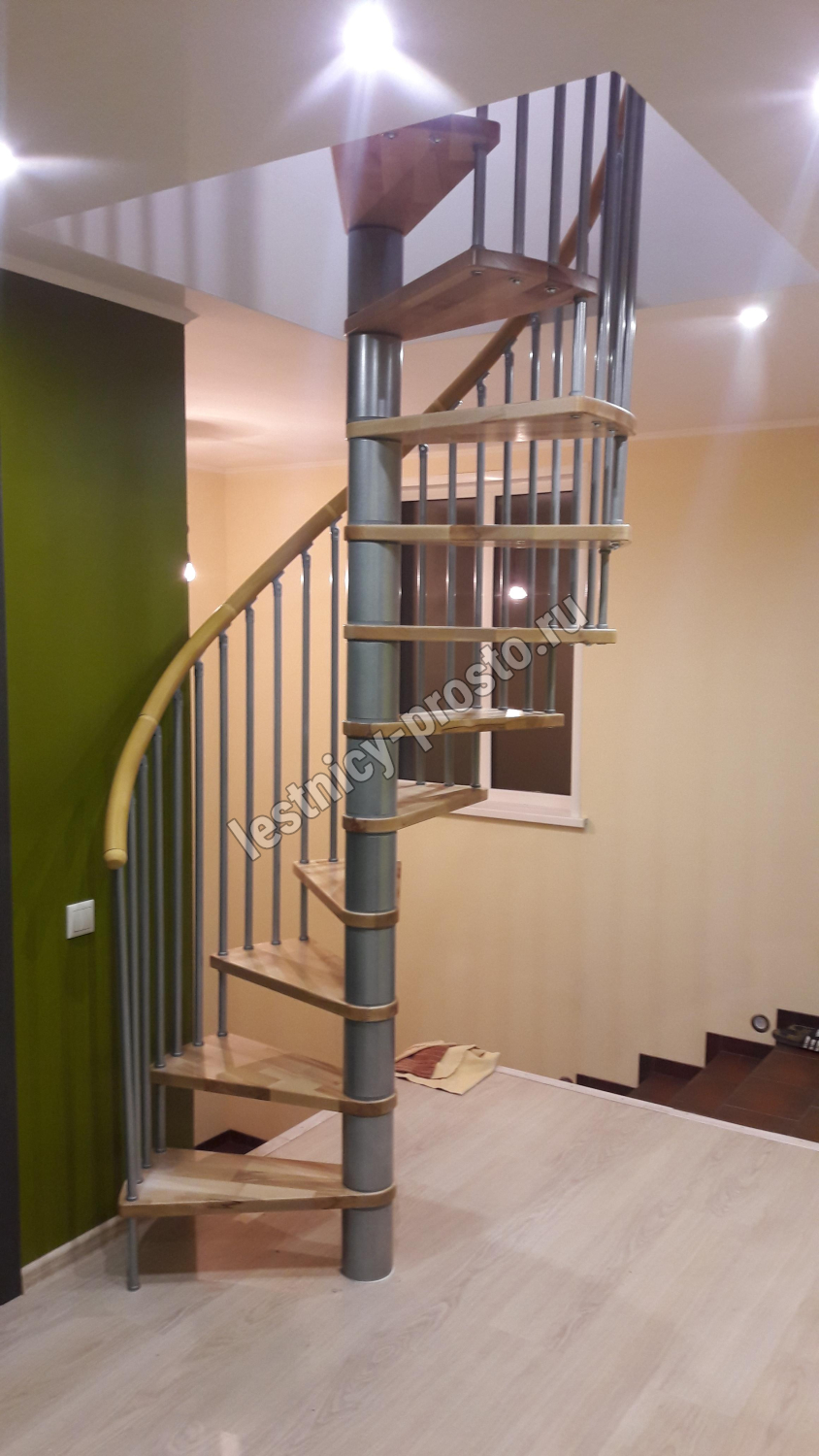 | Винтовая лестница SPIRAL WOOD d140 см, серебро, лакированный бук |