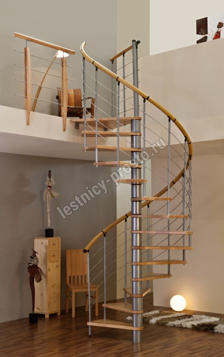 Винтовая лестница Venezia d120 см, серебро, дуб лакированный