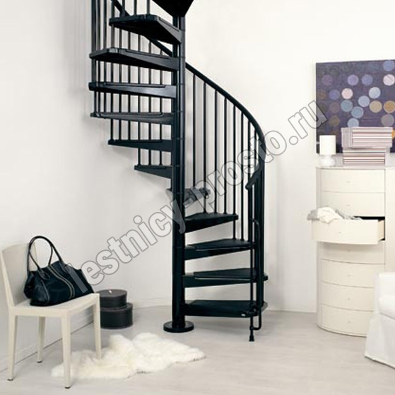 Отделка лестницы всегда в черном цвете. Перила из полиуретана с алюминиевым сердечником черного цвета, как и износостойкие нескользящие панели на ступенях.