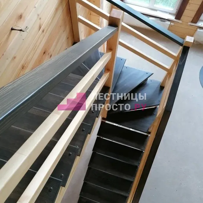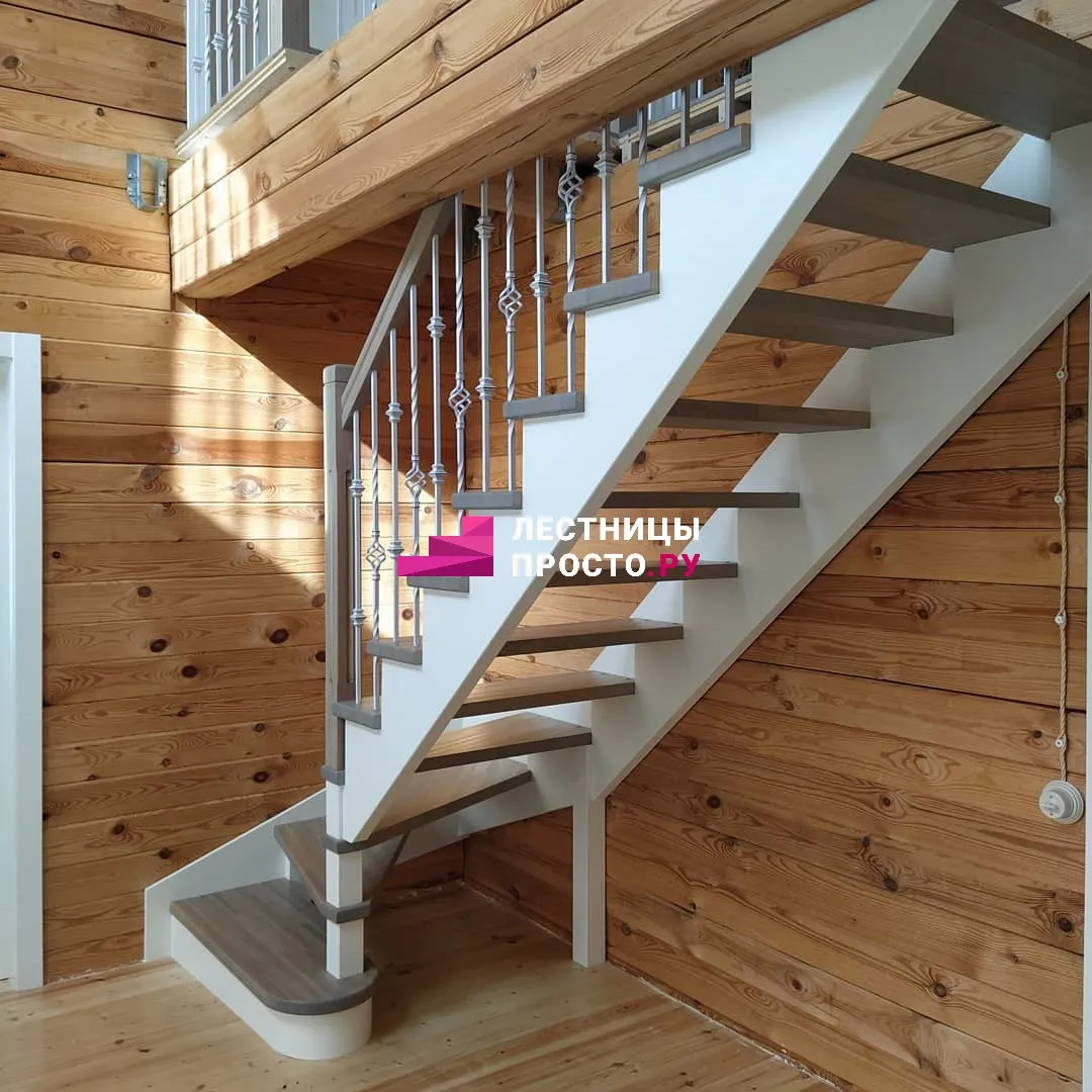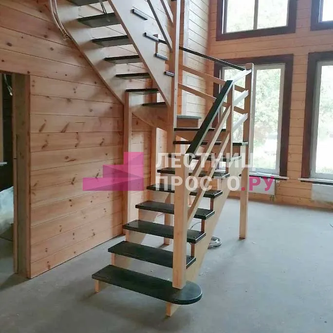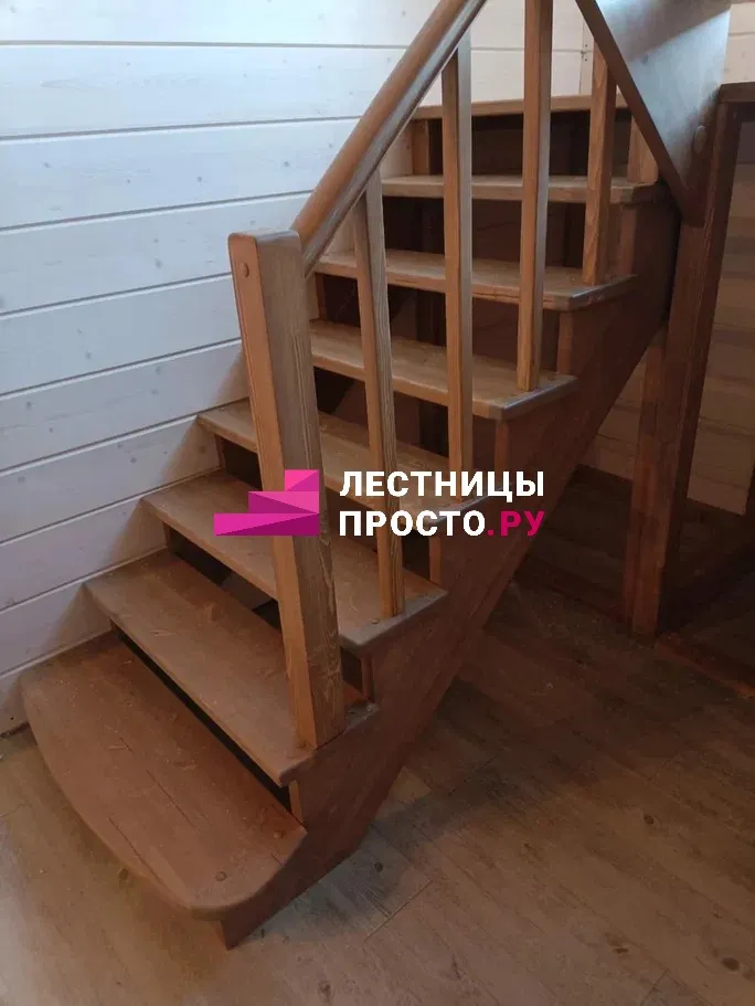 Лестница из сосны с поворотом без покраски