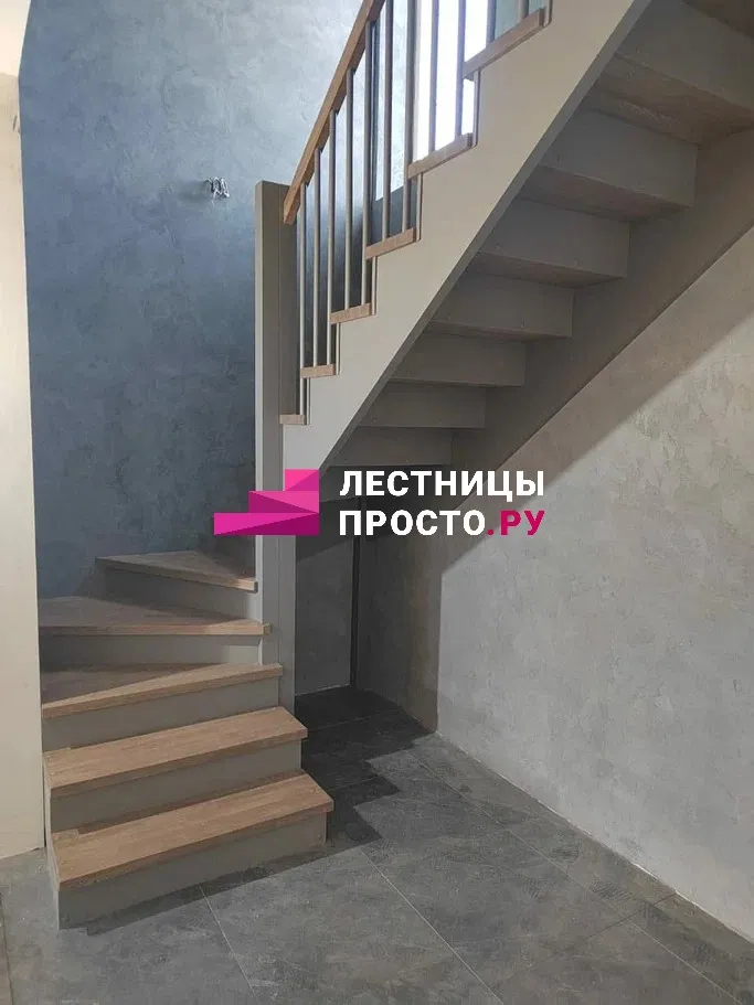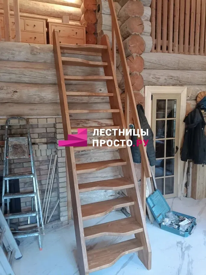 Г-образная лестница из сосны для частного дома ЛС-07/4