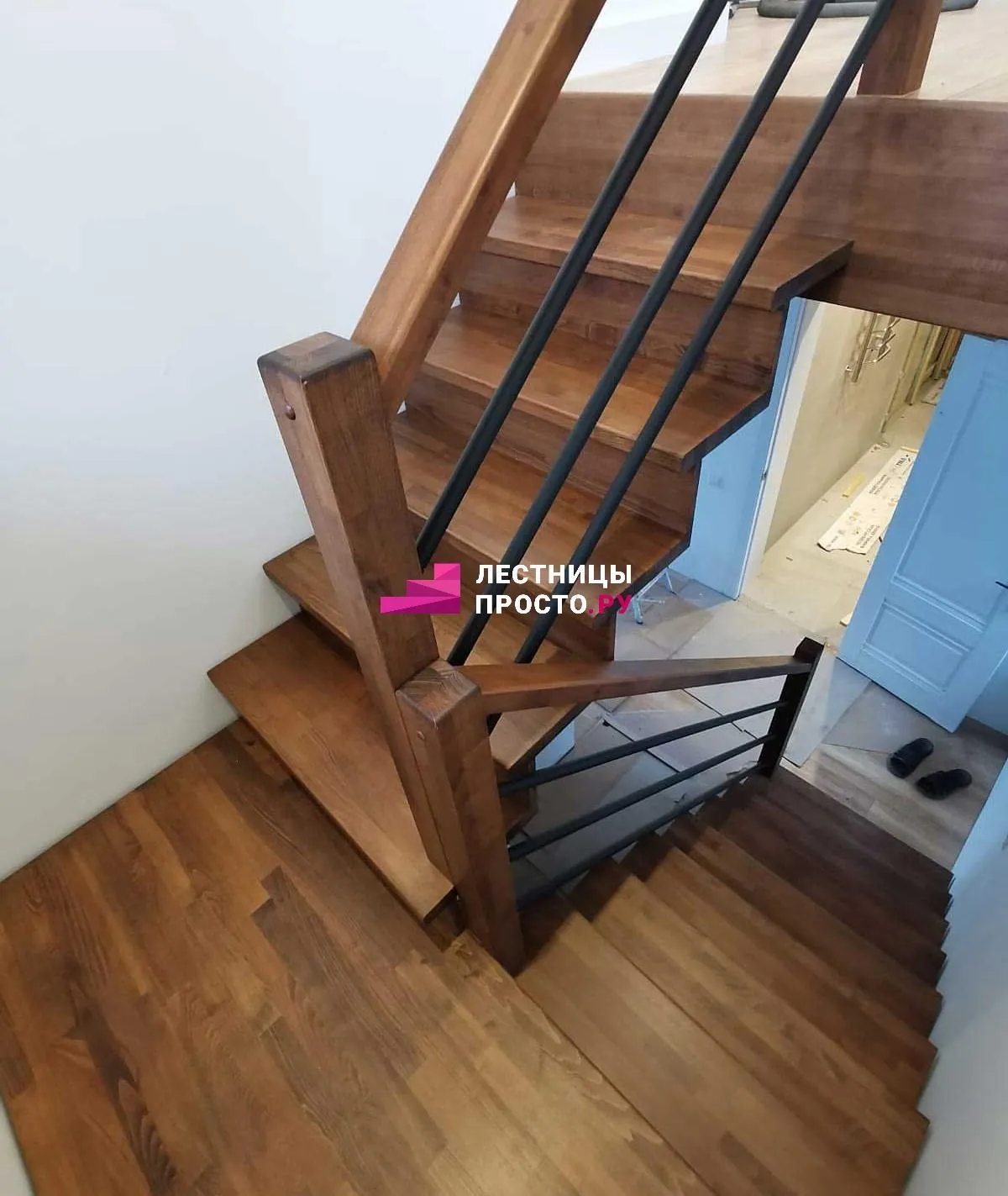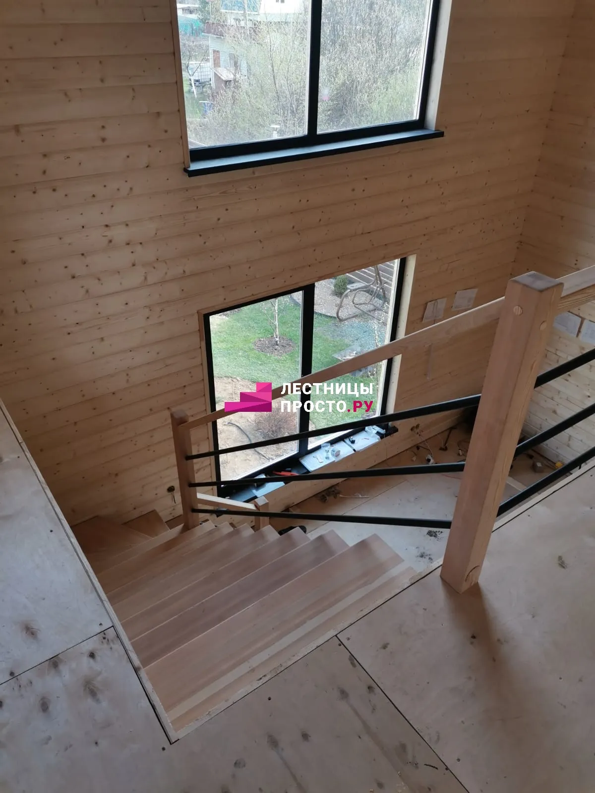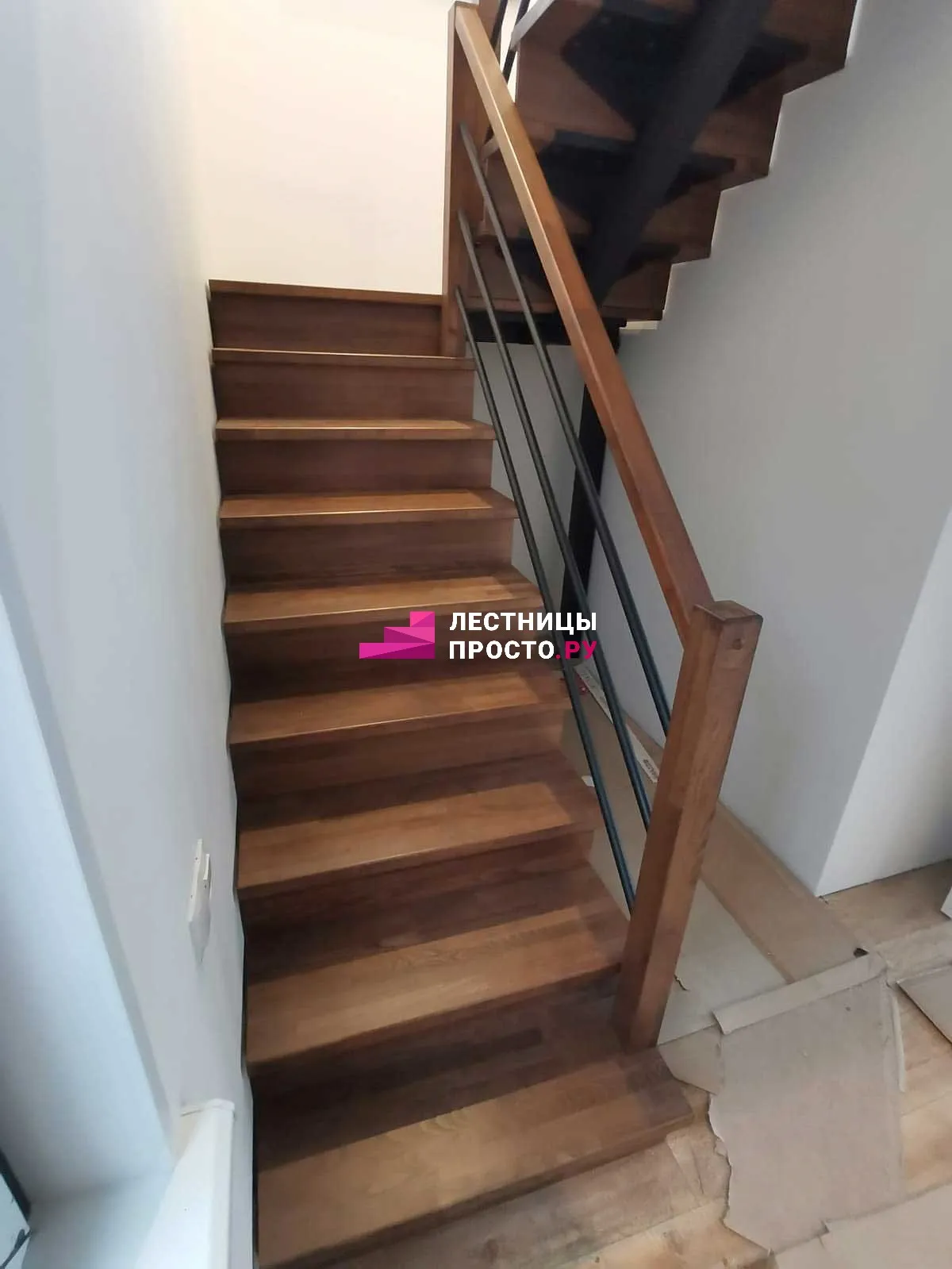 Отделка двухмаршевой бетонной лестницы деревом LP-1-44
