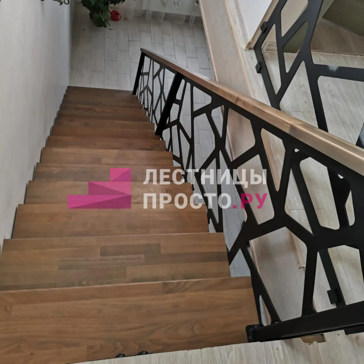 Современная лестница LP металлическая с ограждением тринити п-образная в частном доме