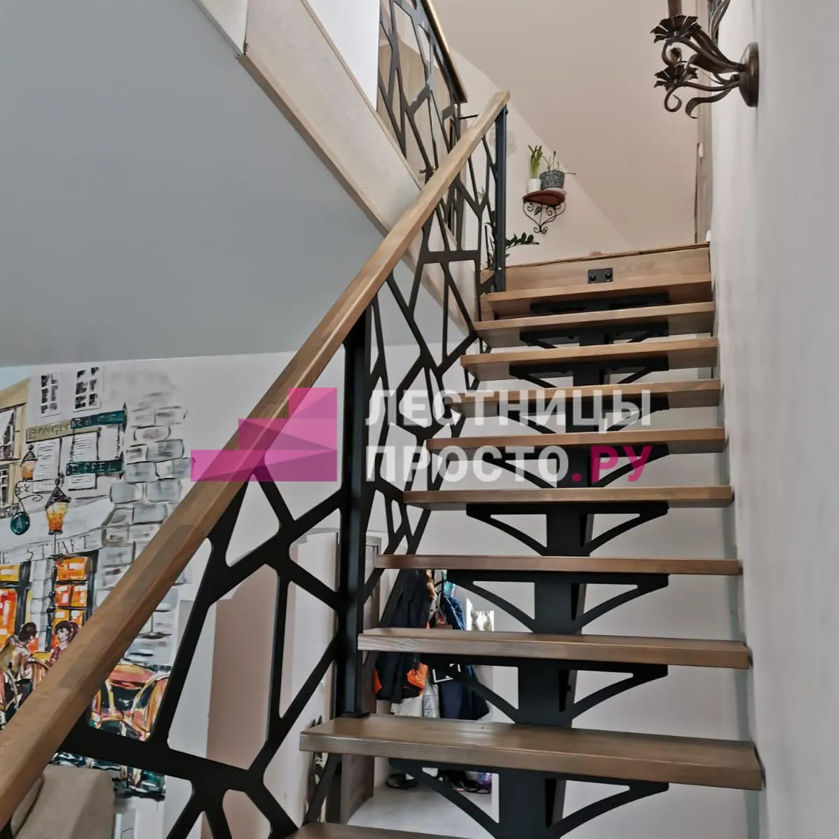 Металлическая лестница с дубовыми ступенями и ограждением LP-1-20